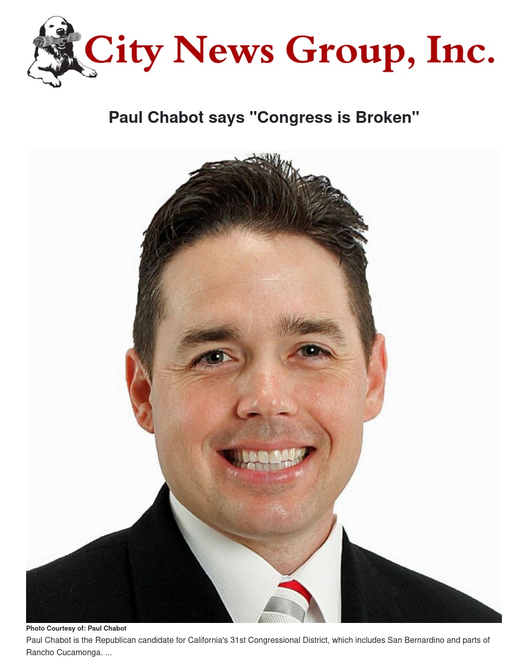 California 31st Congressional District candidate Paul Chabot said “Congress is broken,” but he has the experience needed to address the vital issues that California faces.