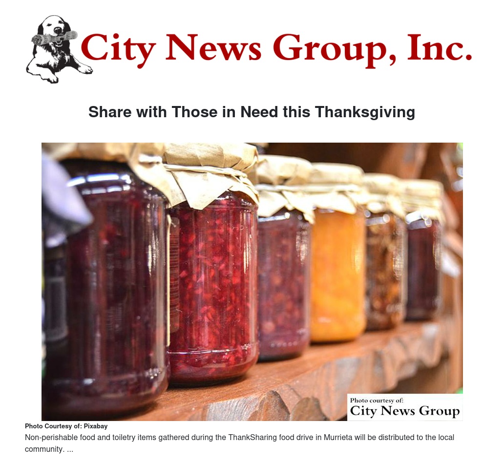 Thanksgiving season is upon us, and what better way to live thankfully than by sharing our bounty with those in need?