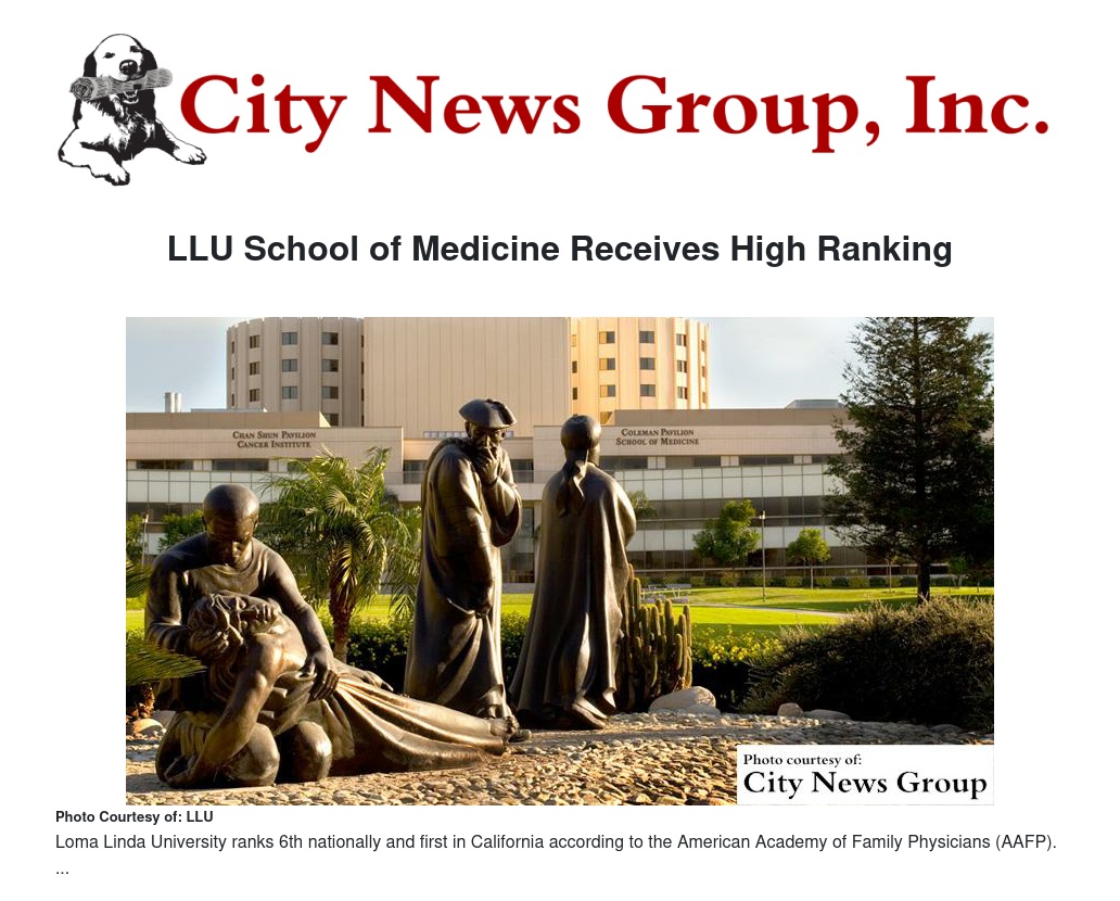 LOMA LINDA>> Loma Linda University has been placed in the top 20 of Universities for producing the highest percentage of graduates who entered family medicine residency programs as first-year residents according to the American Academy of Family Physicians (AAFP).