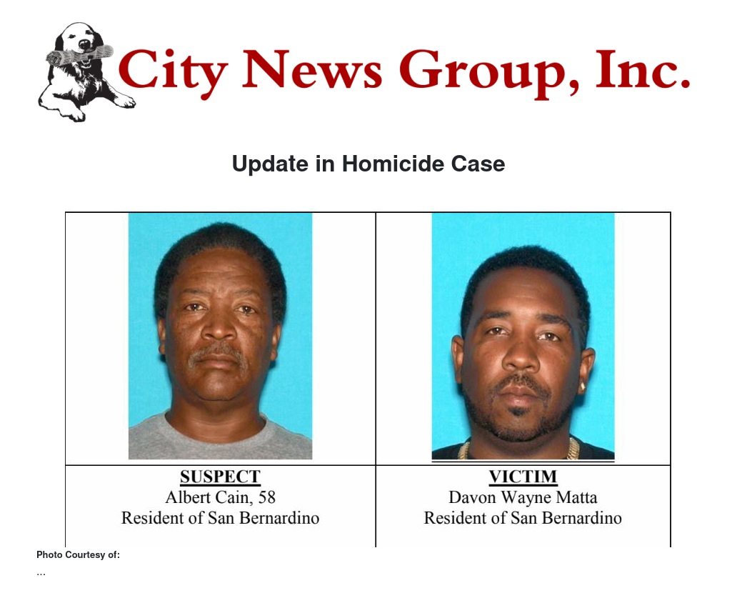 On Monday, July 01, 2019 at 9:00AM the suspect in this case, Albert Cain, 58 of San Bernardino, turned himself into the SBPD Homicide Unit. He was later booked at West Valley Detention Center. It was determined during the investigation that an argument ensued involving family members at the residence just before the shooting. The suspect was related to the to the victim and there are no suspects outstanding at this time. We are still asking for the publics assistance with any information regarding the incident.