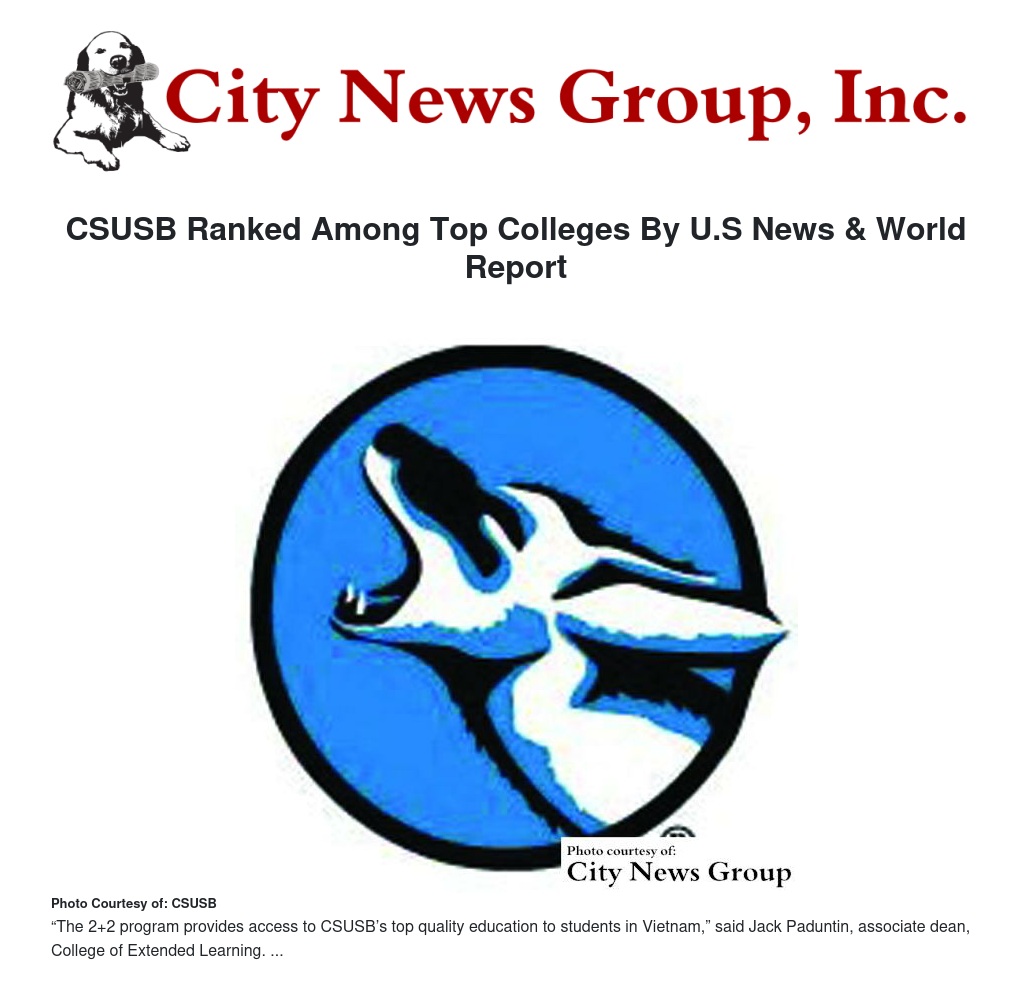 CSUSB Ranked Among Top Colleges By U.S News & World Report
