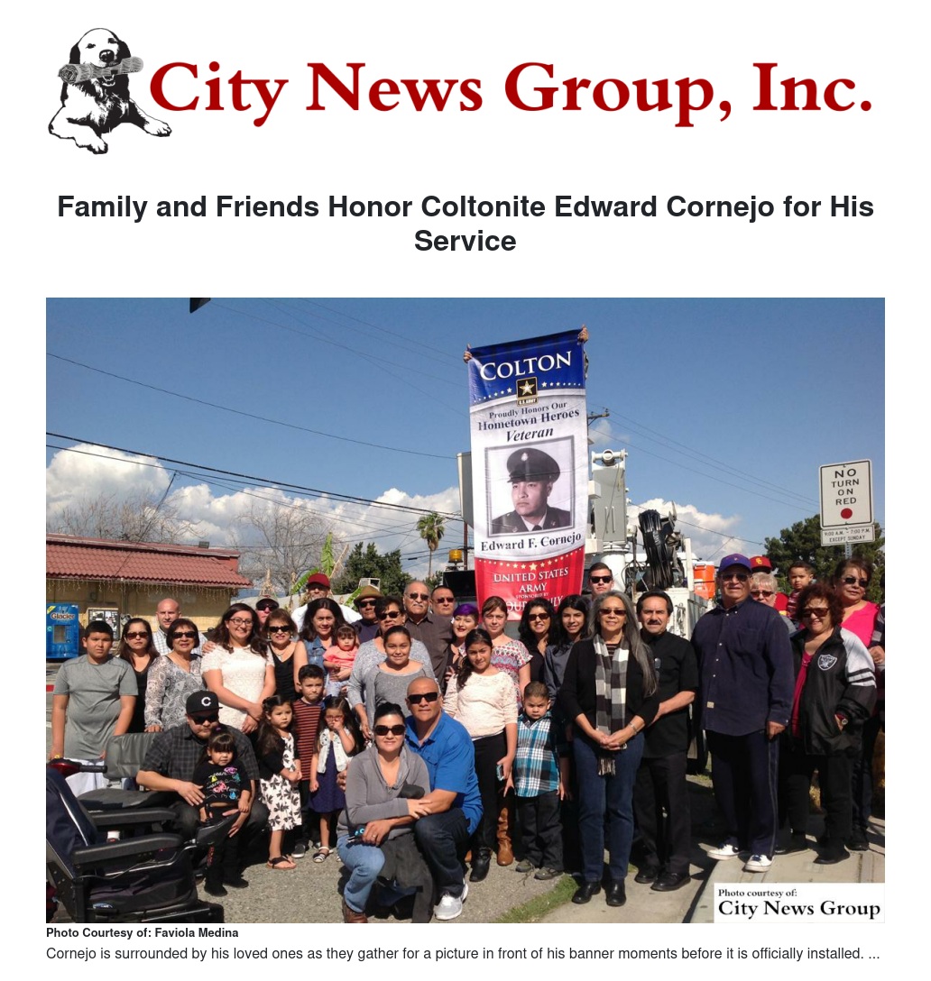 Coltonite Edward F. Cornejo was honored with a military banner installation ceremony on March 3 as a myriad, about 50 to 60, of his family members and friends gathered at the corner of Citrus and Rancho in Colton to honor him for his service.