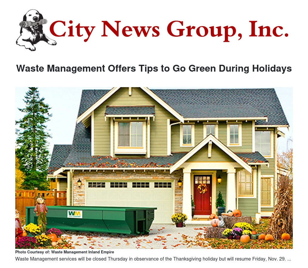 With holiday planning underway, Waste Management would like to share a few eco-friendly tips to green this holiday season: