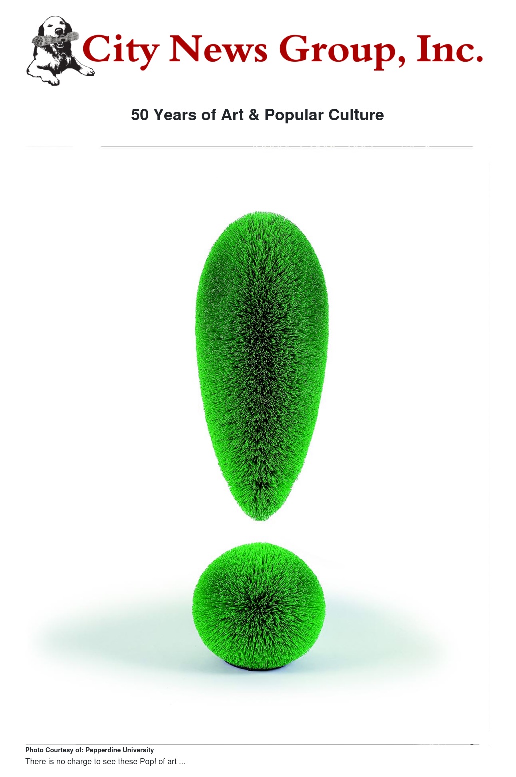 The unique influence of Pop art will be explored in Pop! 50 Years of Art & Popular Culture from the Frederick R. Weisman Art Foundation at Pepperdine University's Frederick R. Weisman Museum of Art beginning Tuesday, August 28 until Sunday, December 2. A special opening reception will be held Sunday, September 9 from 2–4 p.m. There is no admission charge and the public is invited to attend.