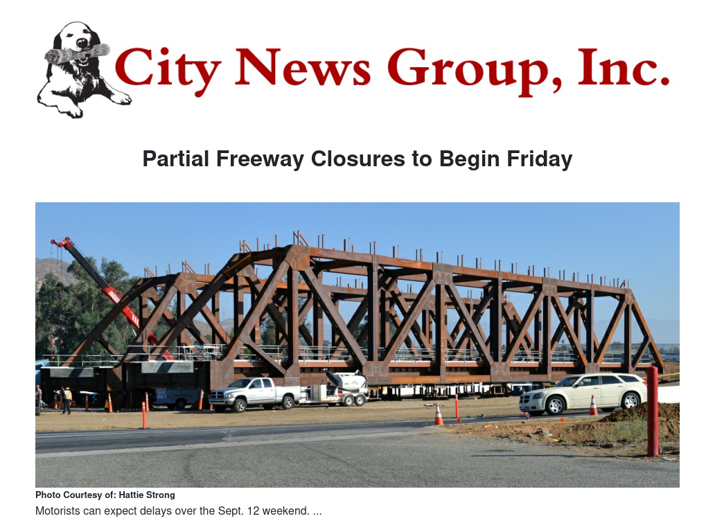 Partial Freeway Closures to Begin Friday