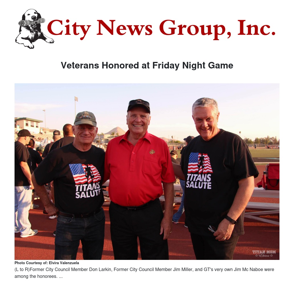 Veterans Honored at Friday Night Game by Francisco Valenzuela Jr - City News Group, Inc.