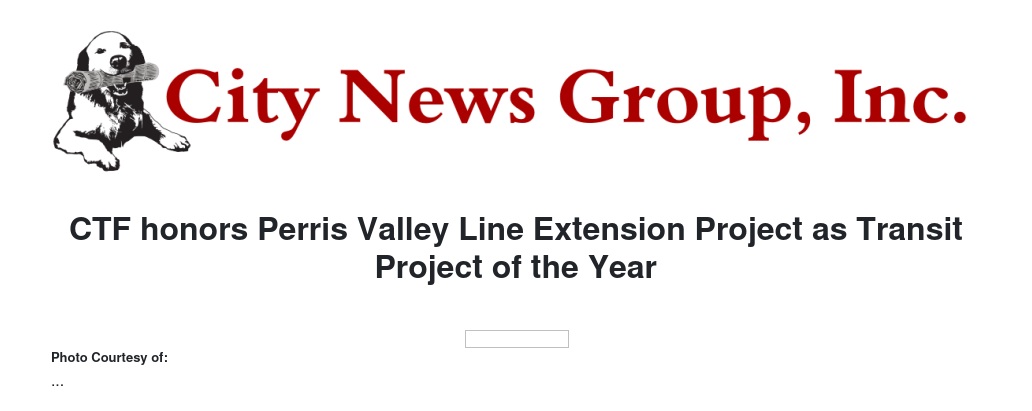 CTF honors Perris Valley Line Extension Project as Transit Project of the Year by - City News Group, Inc.