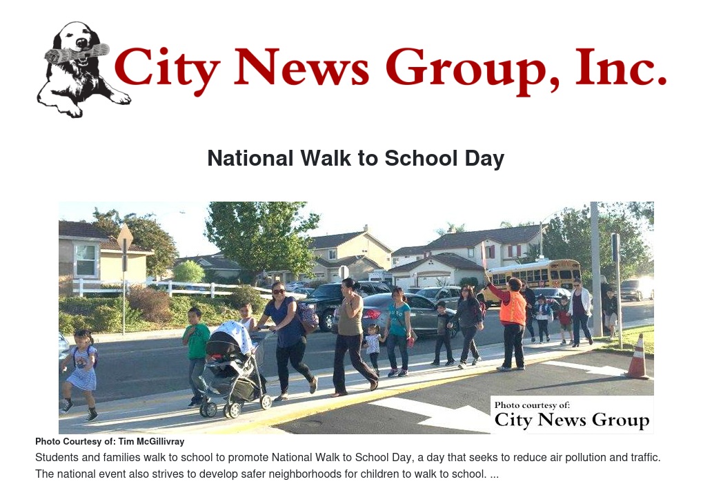 Organized by Safe Routes to School, walking to school not only reduces air pollution and traffic, which is always a safety concern for pedestrians, but it helps make neighborhoods more... well... neighborly as residents get a chance to see each other and say hello.