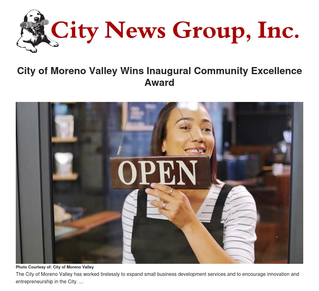 City of Moreno Valley Wins Inaugural Community Excellence Award by Mike Lee - City News Group, Inc.