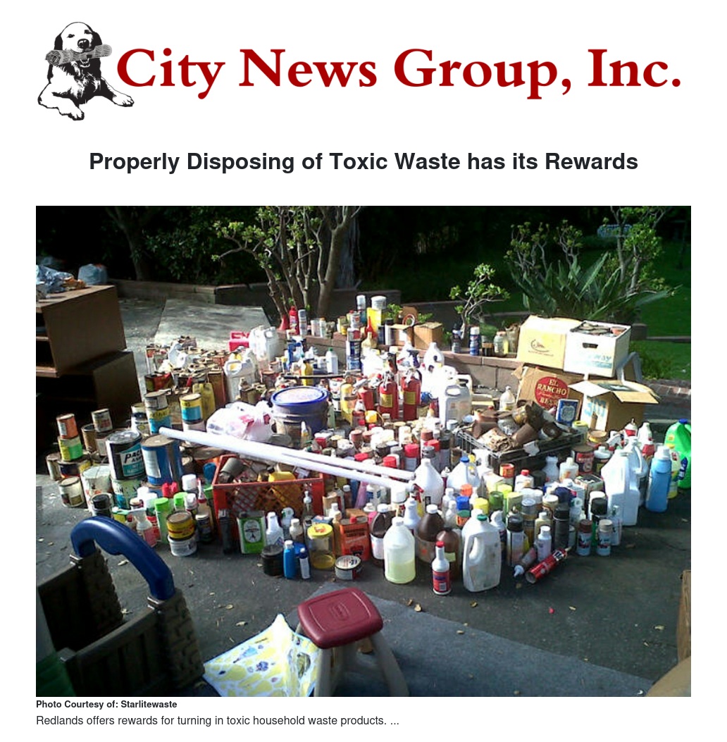 Those who bring their toxic waste to the Redlands Household Hazardous Waste or another authorized San Bernardino County collection center could win a cool free t-shirt.