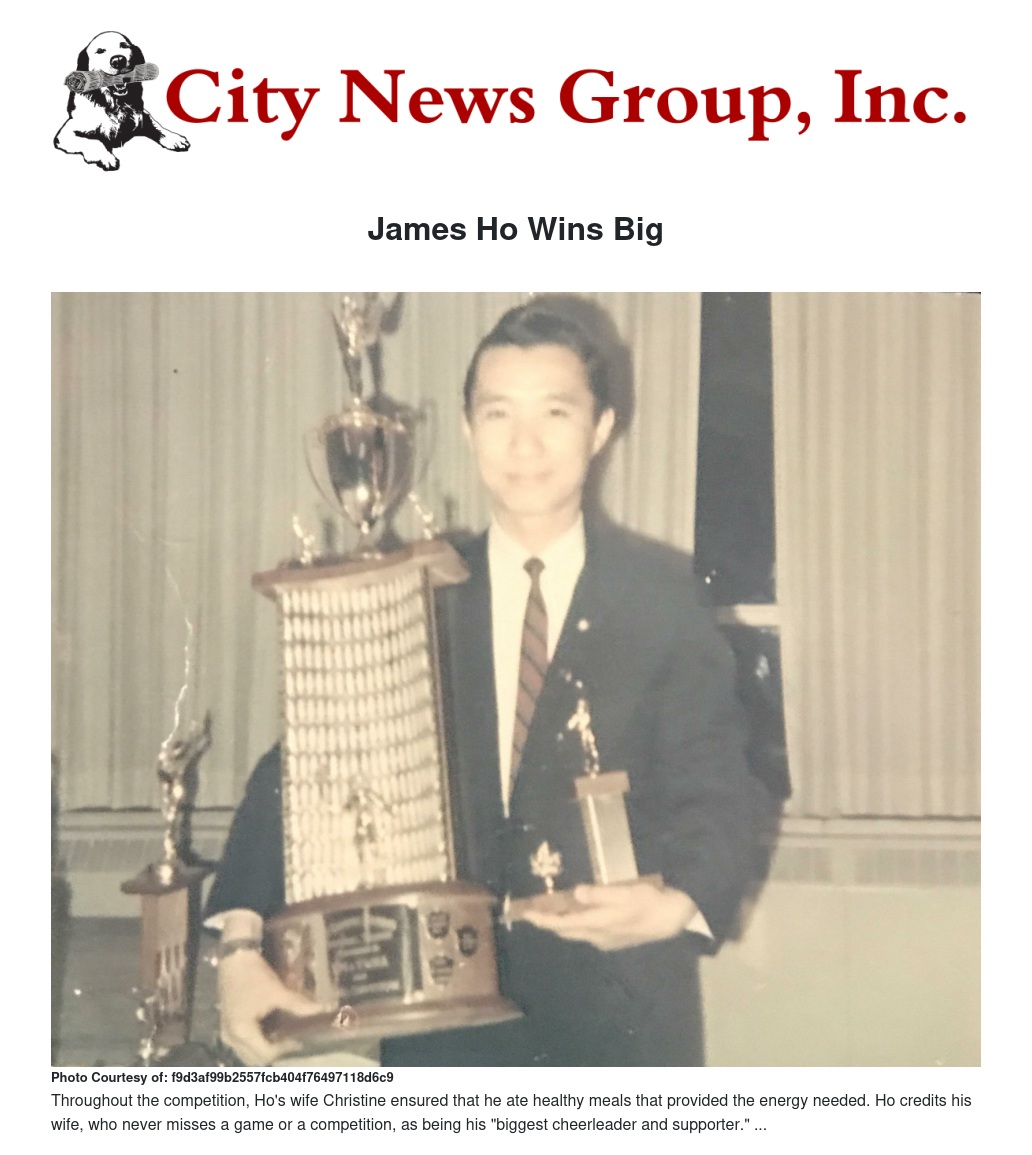 Throughout the competition, Ho's wife, Christine ensured that he ate healthy meals that provided the energy needed. Ho credits his wife, who never misses a game or a competition, as being his "biggest cheerleader and supporter."