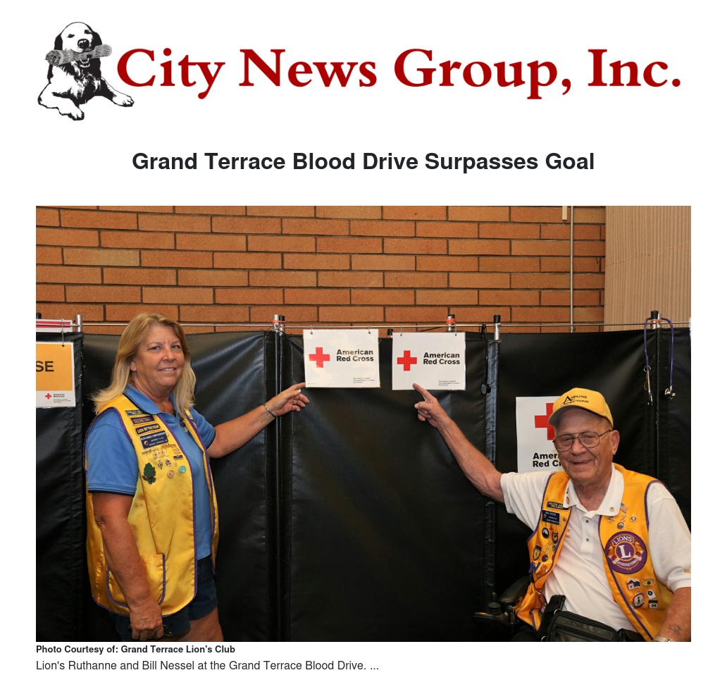 As a community, one way everyone can try and make a difference is attending a blood drive. On August 1, 2018 the City of Grand Terrace and American Red Cross hosted a blood drive at City Hall. The event was assisted by the Grand Terrace Lion’s Club, an organization that empowers community involvement.