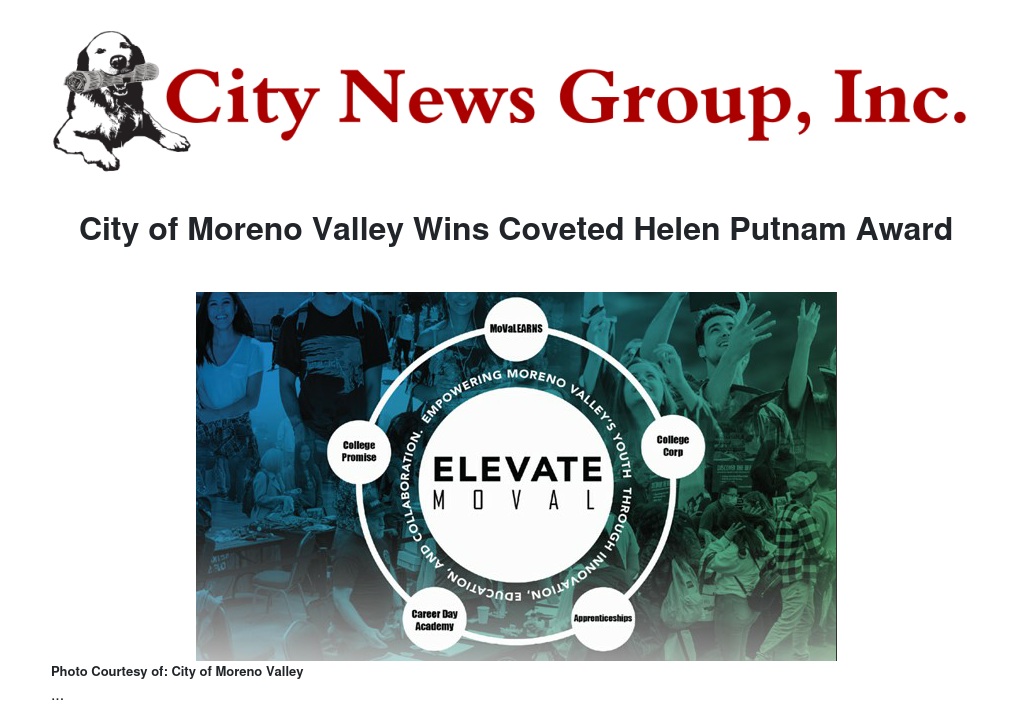 City of Moreno Valley Wins Coveted Helen Putnam Award by City of Moreno Valley - City News Group, Inc.
