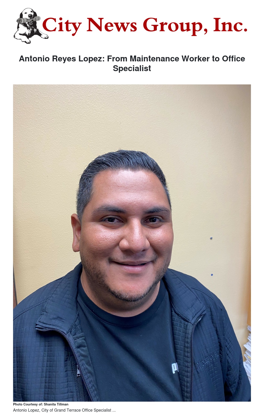 Antonio chose to work at the City of Grand Terrace because he appreciates the city's commitment to cleanliness and maintenance. As he puts it, "It's clean, and not a lot of cities put the effort to maintain their cities the same way." Antonio's journey from a maintenance worker to an office specialist exemplifies his adaptability and commitment to excellence. His contributions are expected to facilitate communication between the City and its residents, reflecting the high standards that residents appreciate.