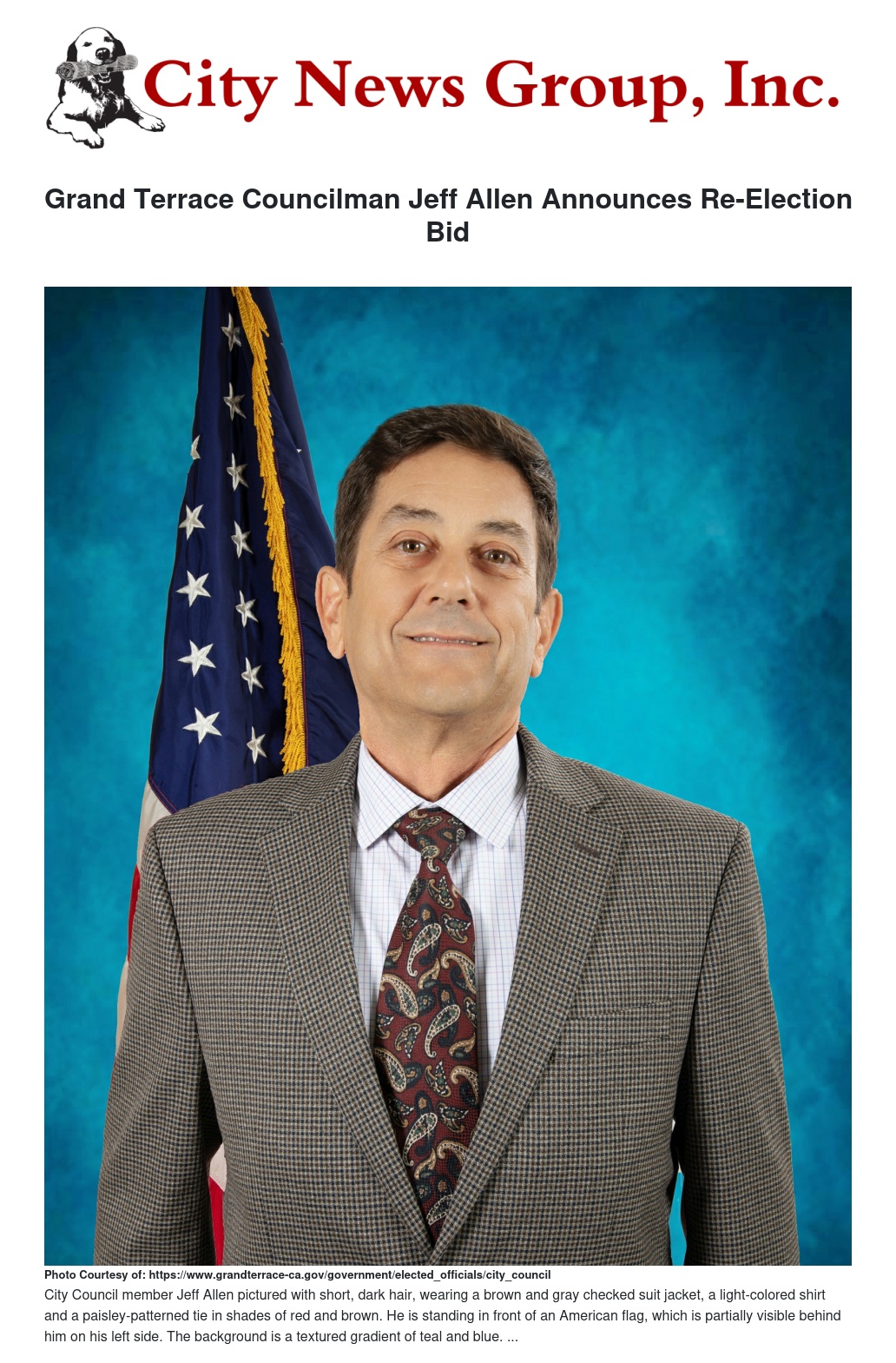 Grand Terrace Councilman Jeff Allen Announces Re-Election Bid by Hattie Strong - City News Group, Inc.