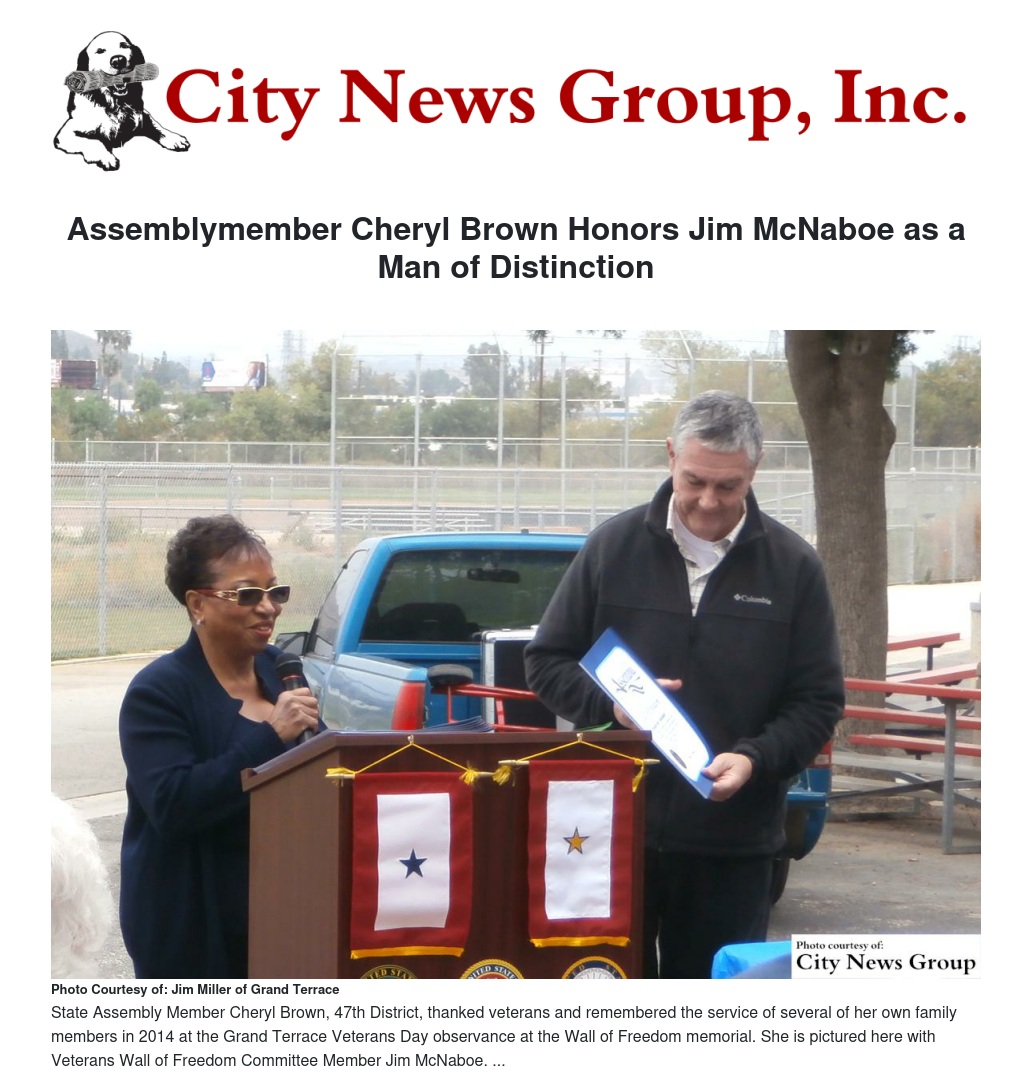 Assemblymember Cheryl Brown Honors Jim McNaboe as a Man of Distinction