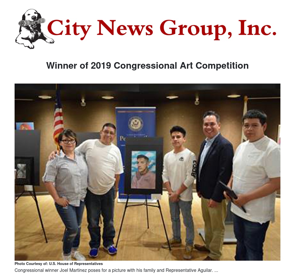 Rep. Pete Aguilar announced that Joel Martinez is the winner of this year’s Congressional Art Competition for California’s 31st Congressional District. A sophomore at Wilmer Amina Carter High School in Rialto, Joel’s painting, entitled 03, was chosen by Rep. Aguilar and a panel of judges as the winner out of more than 60 submissions from area high school students. In addition to having his work displayed in the U.S. Capitol for the next year, Joel and his family will have the opportunity to travel to Washington, DC to meet with Rep. Aguilar and winners from other Congressional Districts courtesy of Southwest Airlines. The winner was announced at the 2019 Art Competition reception hosted by Rep. Aguilar at the San Bernardino County Museum.