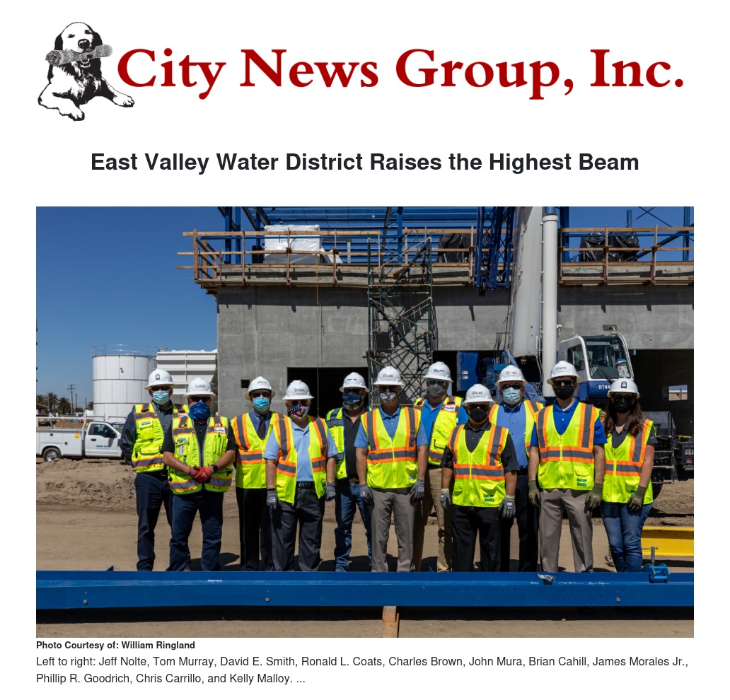 East Valley Water District Raises the Highest Beam by William Ringland - City News Group, Inc.