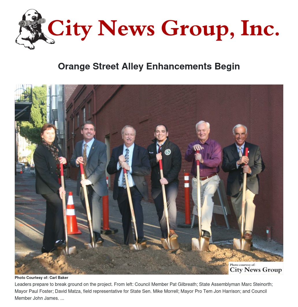 A groundbreaking ceremony was held Thursday, March 5, to kick off work on the Orange Street Alley Pedestrian Enhancement Project, converting a downtown alley into a public park.