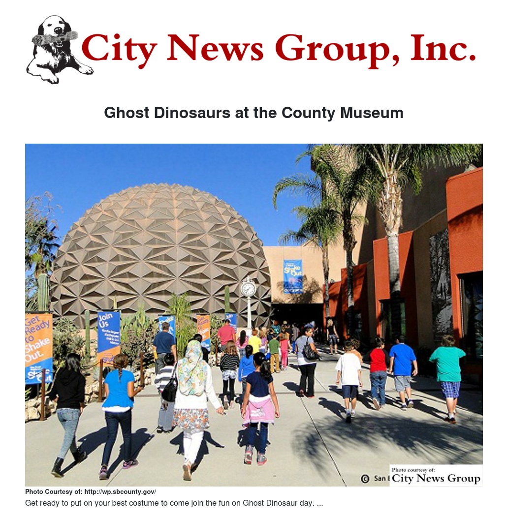 Ghost Dinosaurs, and the County Museum’s other exciting events and exhibits reflect the effort by the Board of Supervisors to achieve the Countywide Vision by celebrating arts, culture, and education in the county, creating quality of life for residents and visitors.