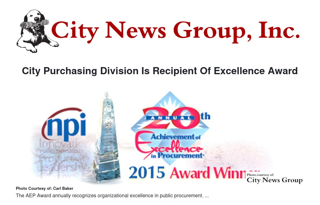 The AEP Award annually recognizes organizational excellence in public procurement.Award criteria are designed to measure innovation, professionalism, productivity, e-procurement and leadership attributes of the procurement function.
