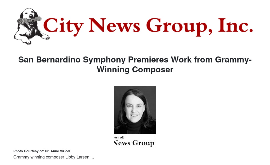 SAN BERNARDINO >> San Bernardino Symphony Music Director and Conductor Frank Paul Fetta was thrilled to hear the latest news about Grammy-winning composer Libby Larsen, who has been commissioned to write a new work to be premiered at the orchestra’s 88th season opening concert this coming October.
