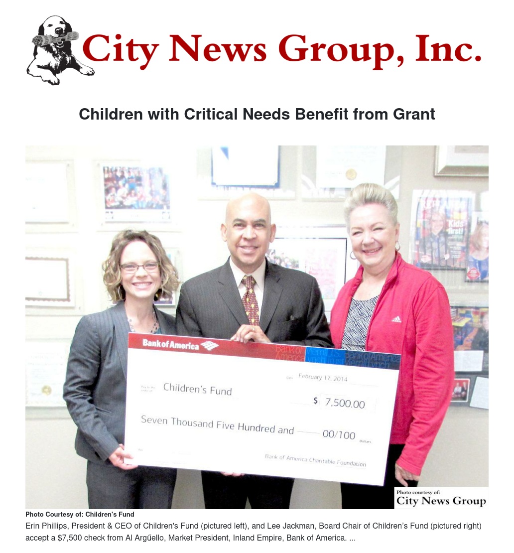 More local children will receive assistance after the donation of a $7,500 grant awarded to Children's Fund by the Bank of America Charitable Foundation.