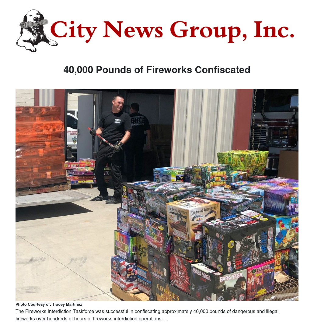 The Fireworks Interdiction Taskforce was successful in confiscating approximately 40,000 pounds of dangerous and illegal fireworks over hundreds of hours of fireworks interdiction operations. In addition to distributing hundreds of warnings, the taskforce issued 245 citations resulting in $306,250 in fines, with fines up to $1,250 for the first offense with the possibility of arrest.