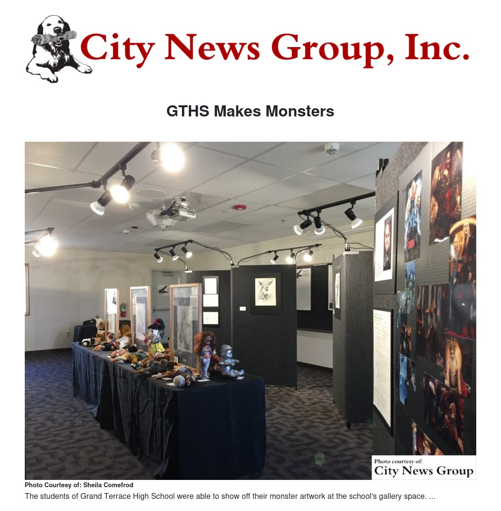 The monster creations were on display at the GTHS Art Gallery at Grand Terrace High School, where the lighting and display walls add a sense of professionalism and authenticity, Comerford said.