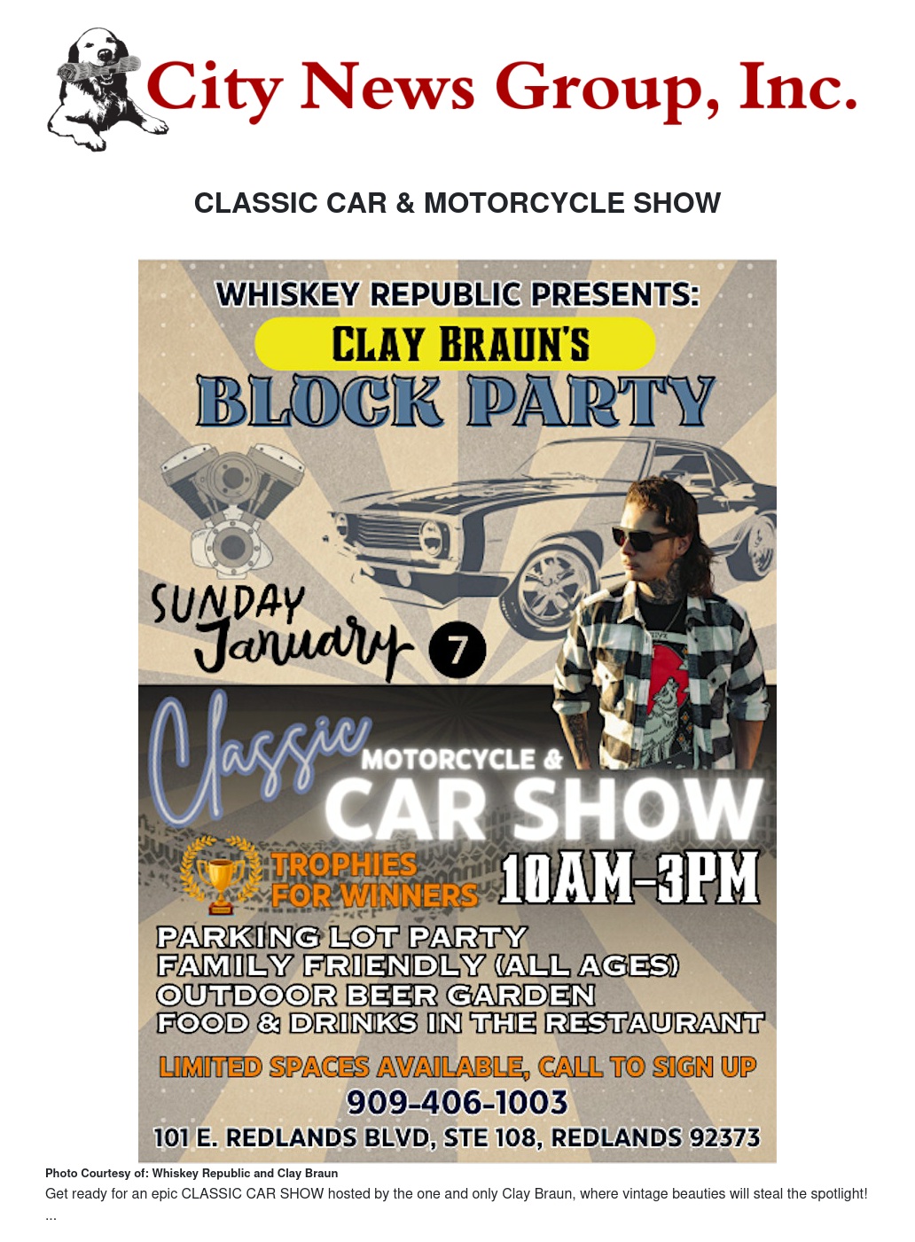 CLASSIC CAR & MOTORCYCLE SHOW by Whiskey Republic and Clay Braun - City News Group, Inc.