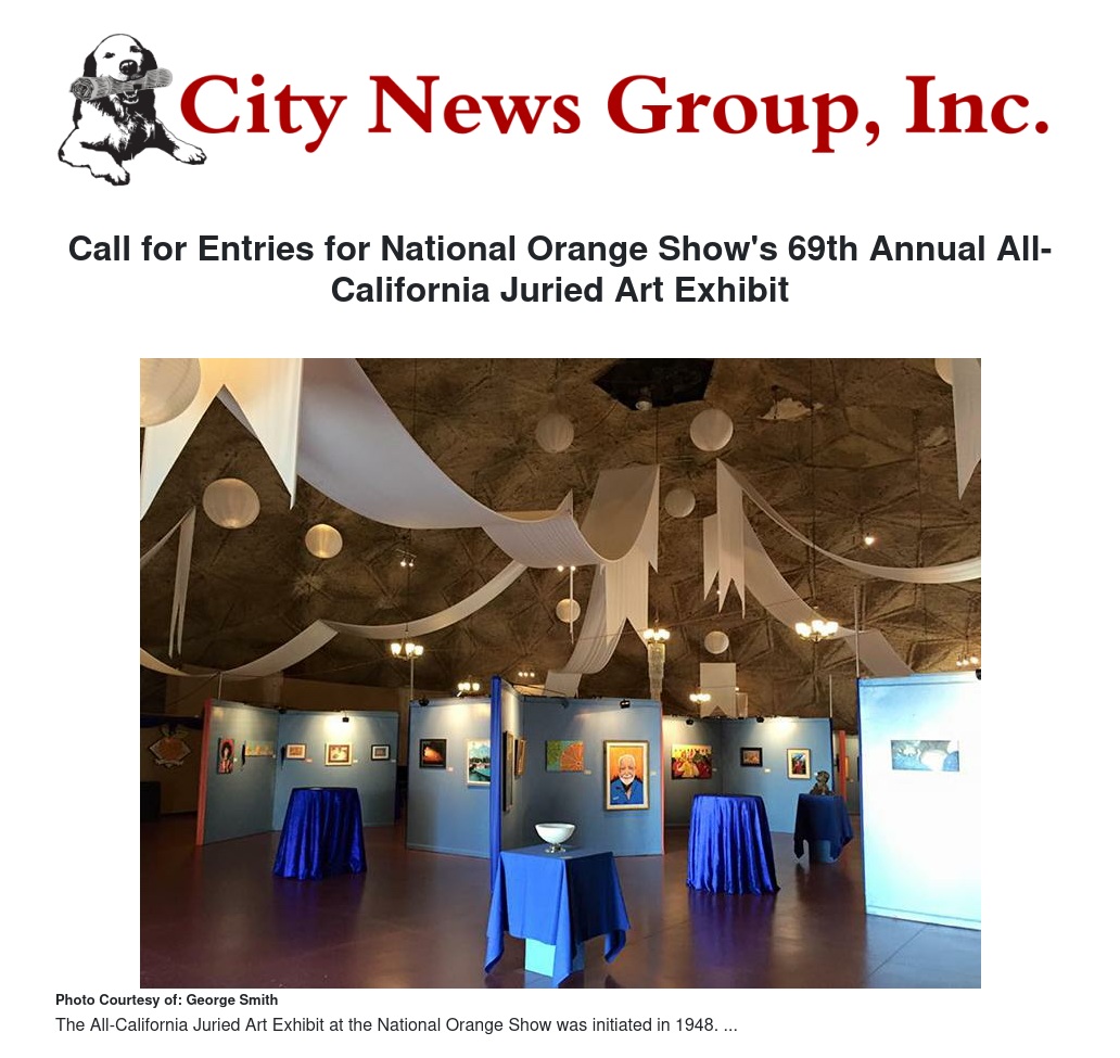 The National Orange Show announces a Call for Entries for its 69th Annual All-California Juried Art Exhibit. All artwork including painting, drawing, pastel, mixed media, collage, photography, and sculpture are welcome. The deadline to submit is March 12th.