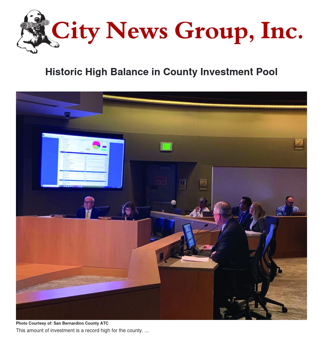 Historic High Balance in County Investment Pool by Tracy Calentti - City News Group, Inc.