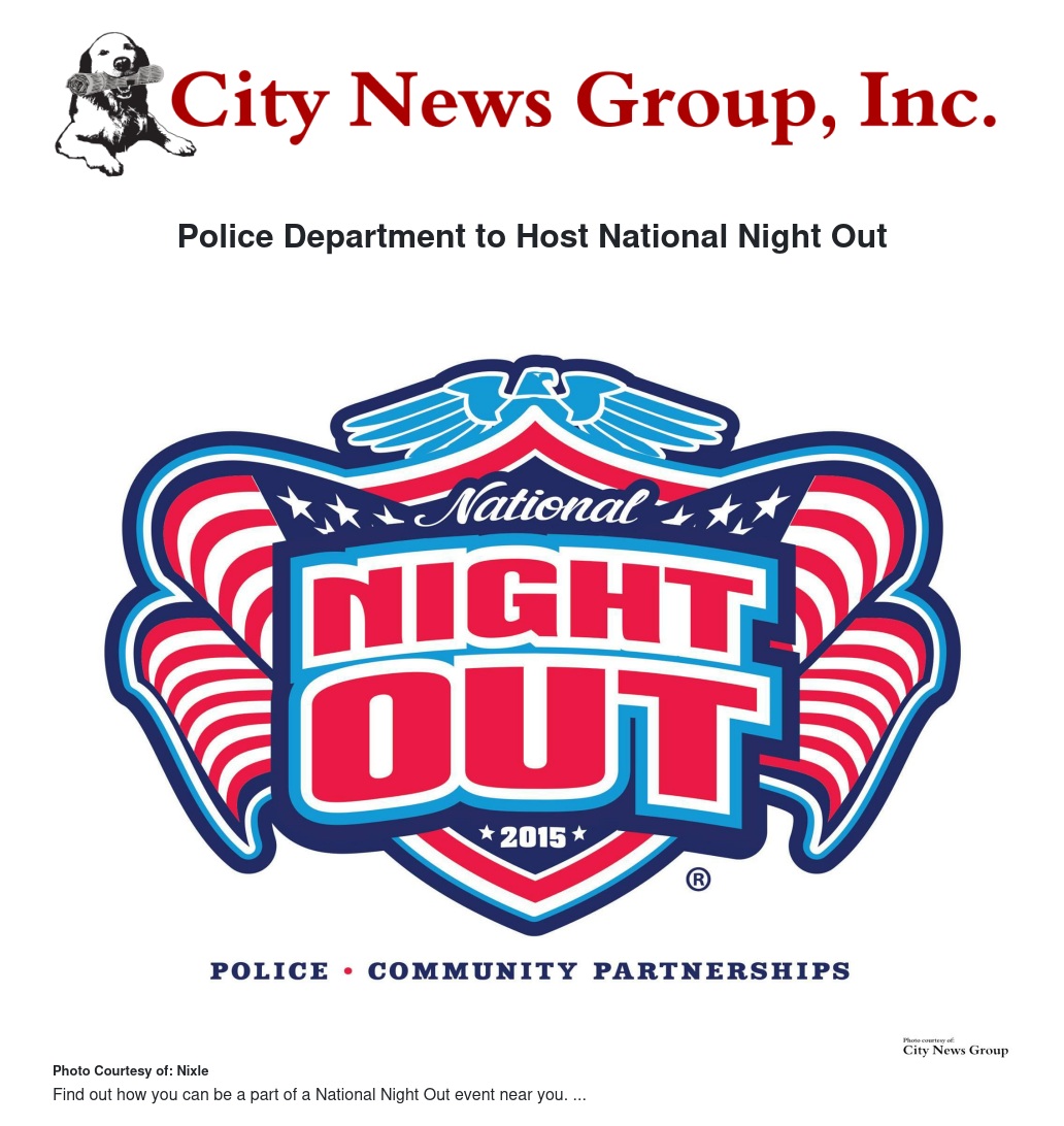 Police Department to Host National Night Out