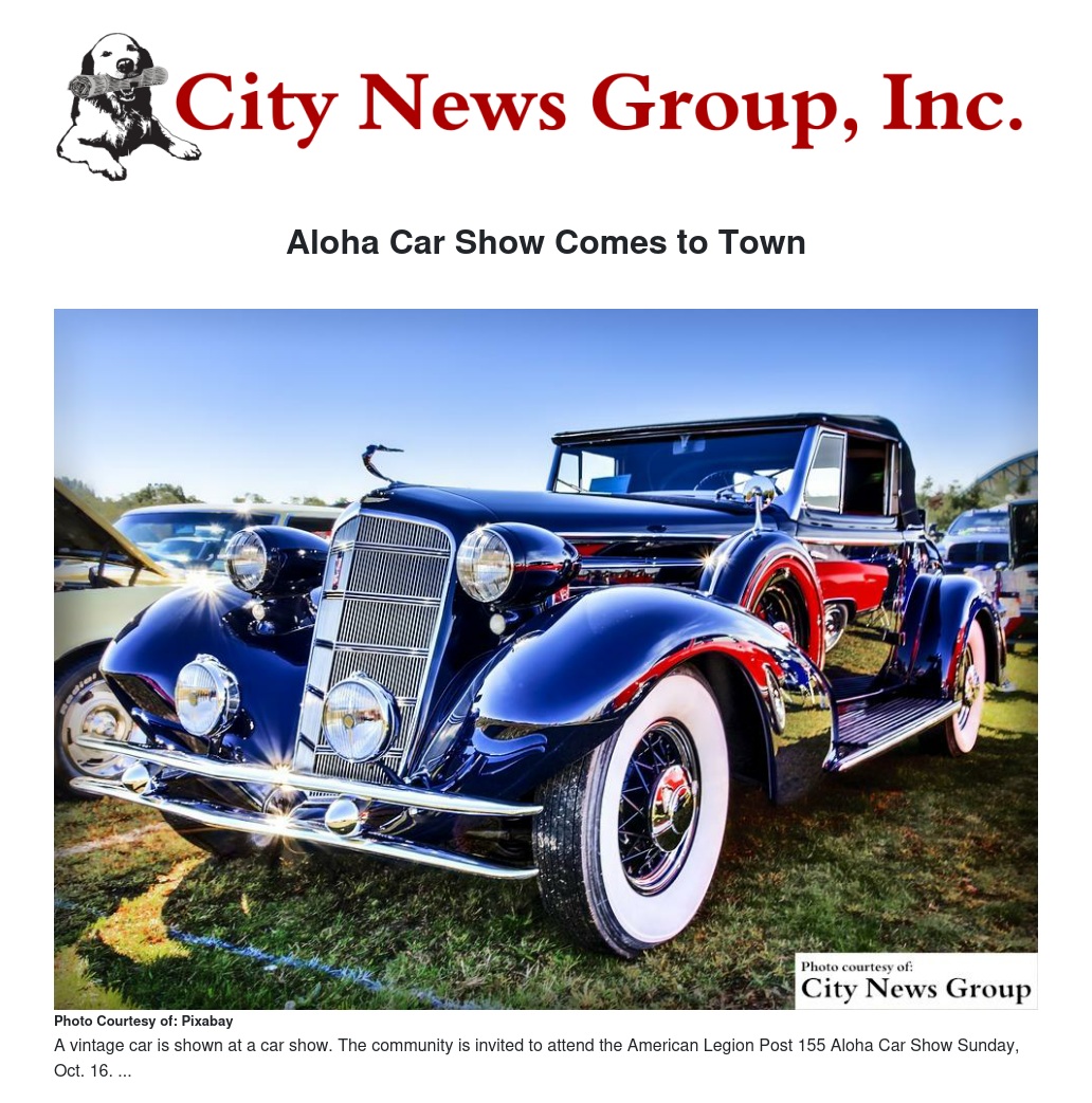 COLTON>> The American Legion Post 155 in Colton, California is hosting the upcoming Aloha Car Show Sunday, Oct. 16 from 8 a.m. to 4:30 p.m. at the legion, located at 1401 Veterans Way in Colton.