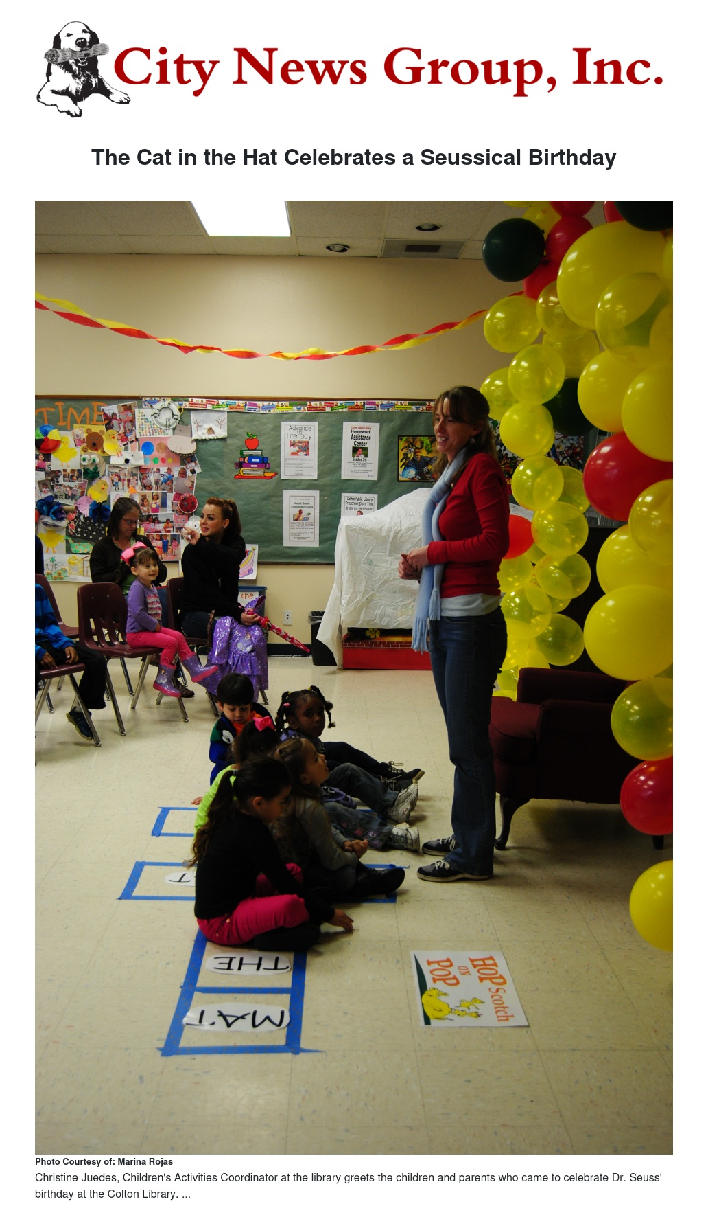 Saturday March 2, 2014, the Colton Public Library held a birthday party for none other than the famed author Dr. Seuss. Coinciding with the annual Read Across America Day, the party was held by the Friends of the Colton Library.