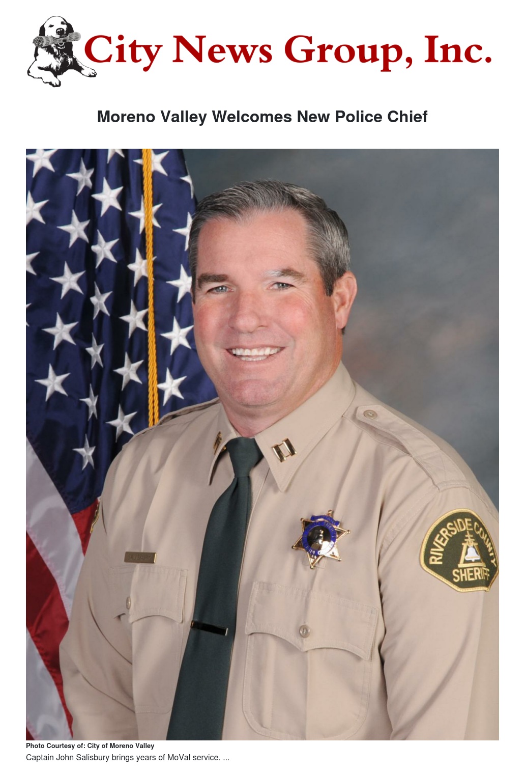 Moreno Valley Welcomes New Police Chief by City of Moreno Valley - City News Group, Inc.