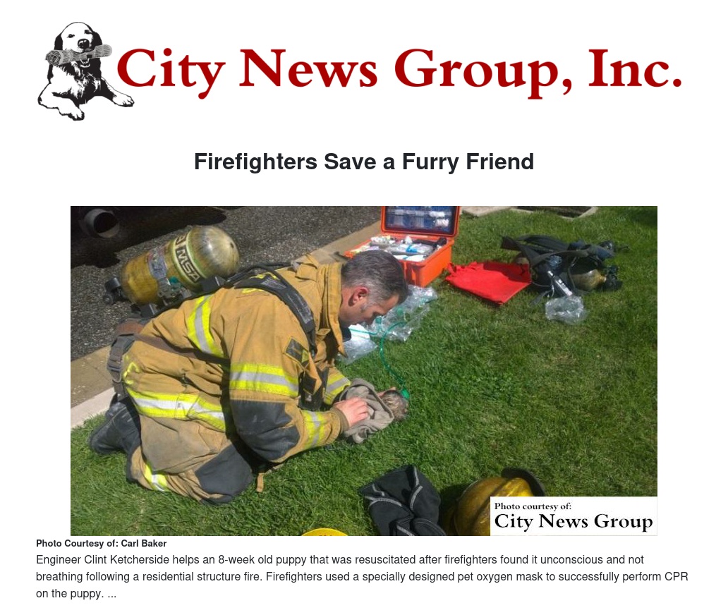 It took firefighters ten minutes to extinguish the flames and during a search of the residence, response firefighters located an 8-week old Shih-tzu puppy in the house. The puppy was not breathing and firefighters jumped quickly into action to save its life. Using a specially designed pet oxygen mask, firefighters were able to resuscitate the dog.