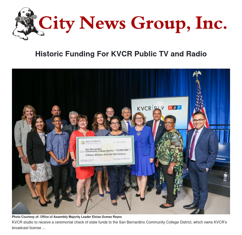 Historic Funding For KVCR Public TV and Radio by Daniel Peeden, MPP - City News Group, Inc.