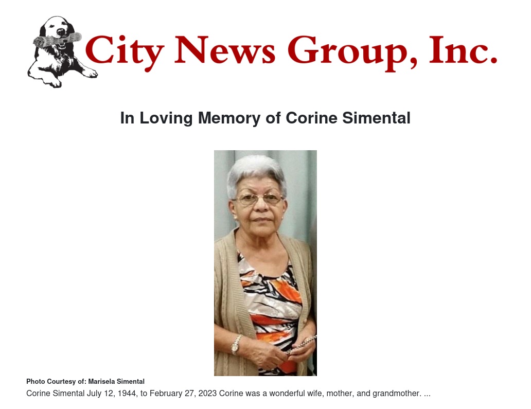 In Loving Memory of Corine Simental by Marisela Simental - City News Group, Inc.