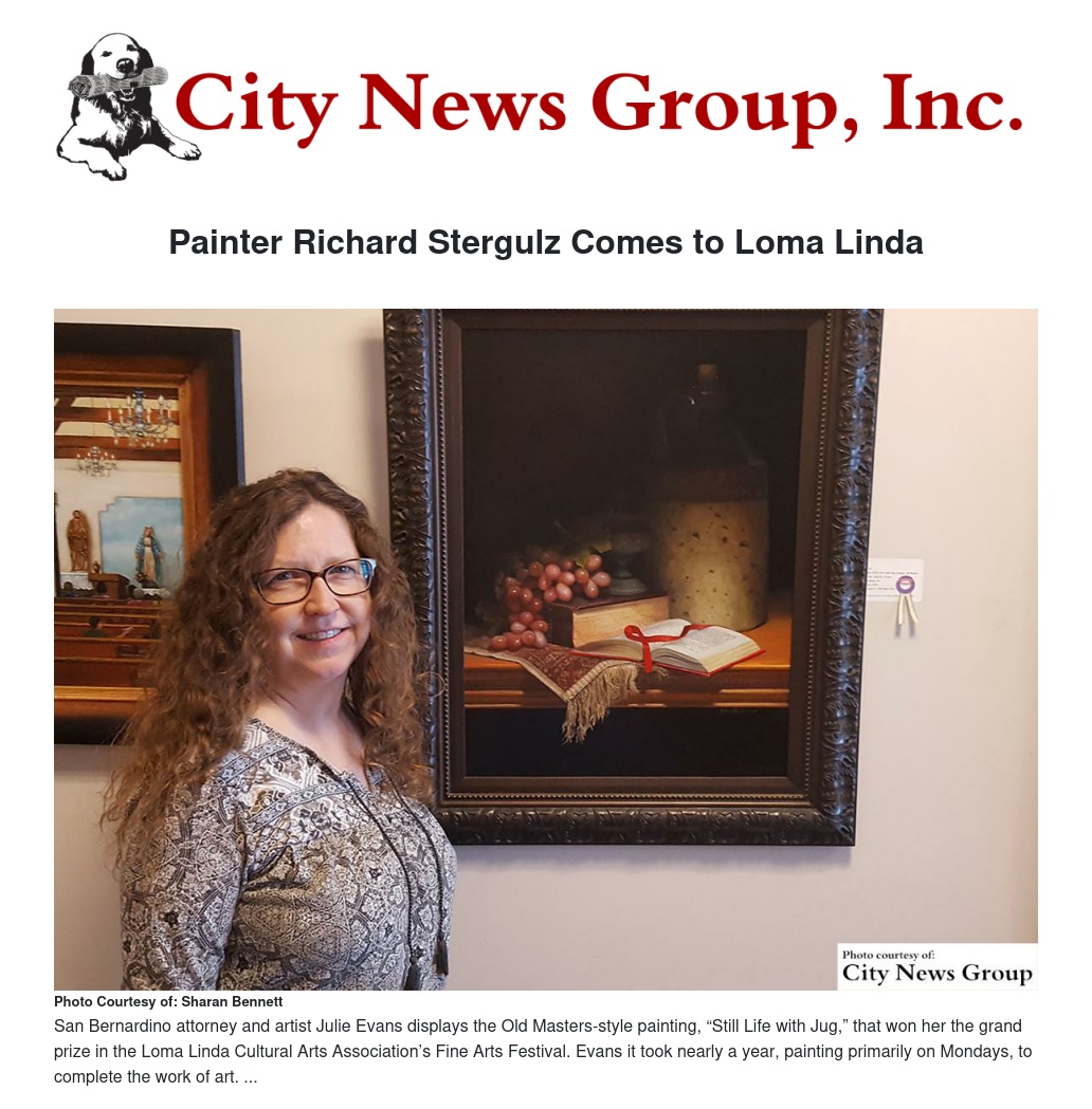 LOMA LINDA >> Portraitist and figurative painter Richard Stergulz will demonstrate his painting techniques at the June 12 meeting of the Loma Linda Cultural Arts Association (LLCAA), which will be held from 2:00 to 4:00 p.m. in the Loma Linda Senior Center, 25541 Barton Road in Loma Linda. Admission is free for LLCAA members, but $5.00 for everyone else.