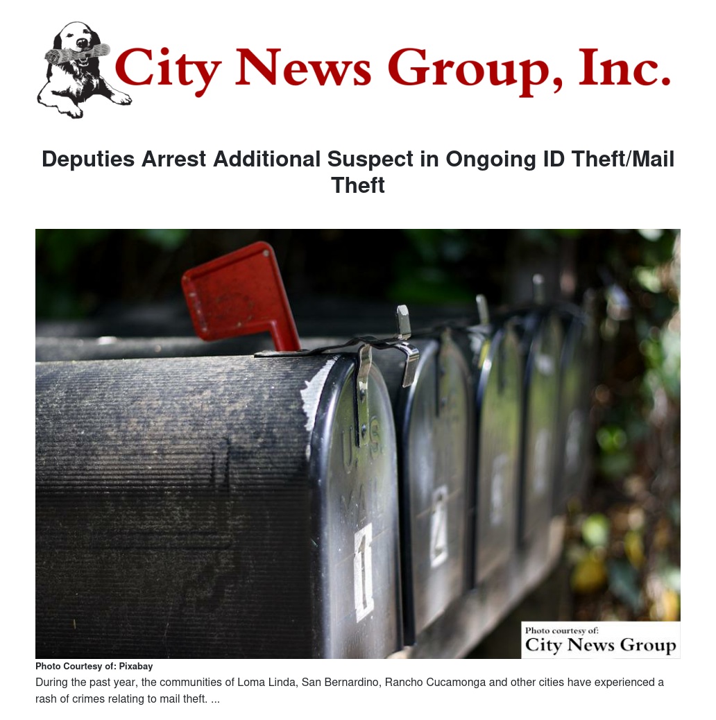 LOMA LINDA>> During the past year, the communities of Loma Linda, San Bernardino, Rancho Cucamonga and other cities have experienced a rash of crimes relating to mail theft.