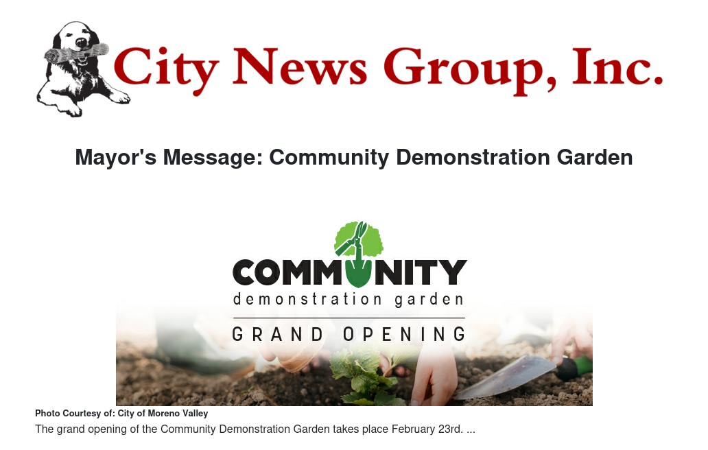 Mayor's Message: Community Demonstration Garden by Mayor Yxstian Gutierrez - City News Group, Inc.