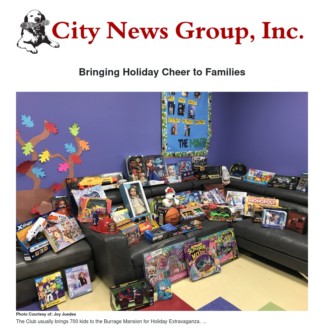 The Club is hosting a drive-through holiday toy event called Making Futures Bright, which replaces its annual Holiday Extravaganza at the Burrage Mansion. Club members will be invited to drive by the clubhouse Dec. 21 and 22 and receive a toy of their choice and a book, and enjoy a festive atmosphere. Each family will get a bag of food.