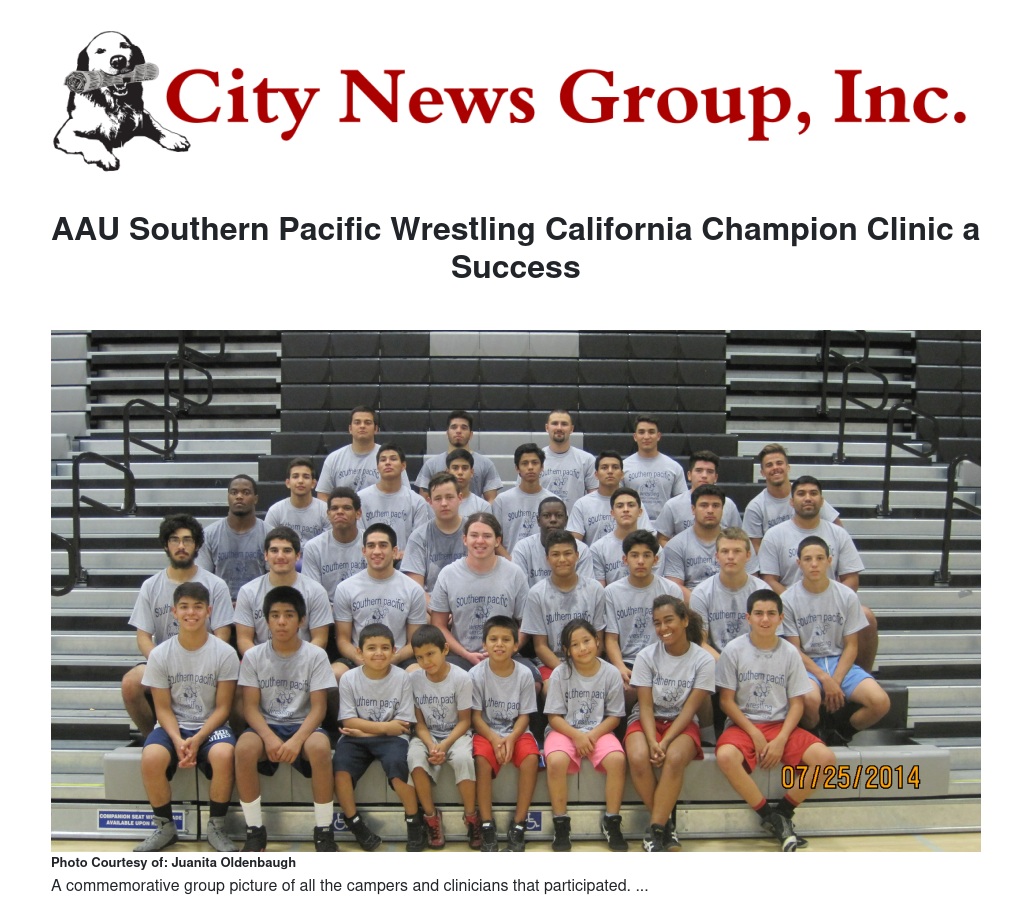 The AAU, Amateur Athletic Union, Southern Pacific Wrestling California Champion Clinic was held on July 23-25 from 9 a.m. to 5 p.m. in the gymnasium at Grand Terrace High School.