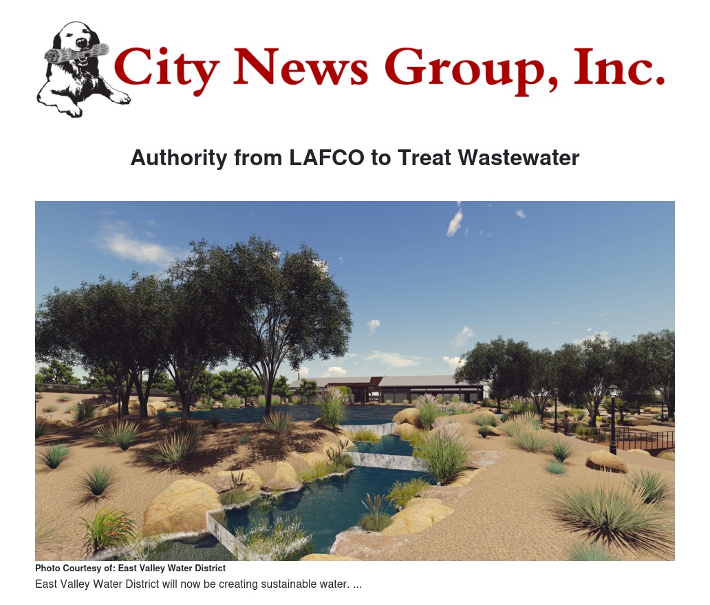 East Valley Water District has received approval from the San Bernardino County Local Agency Formation Commission (LAFCO) for the activation of its wastewater treatment authority. This decision allows East Valley Water District to treat wastewater within its service area at the future Sterling Natural Resource Center (SNRC), a state-of-the-art wastewater treatment facility designed to create a sustainable water supply for nearly 700,000 people.