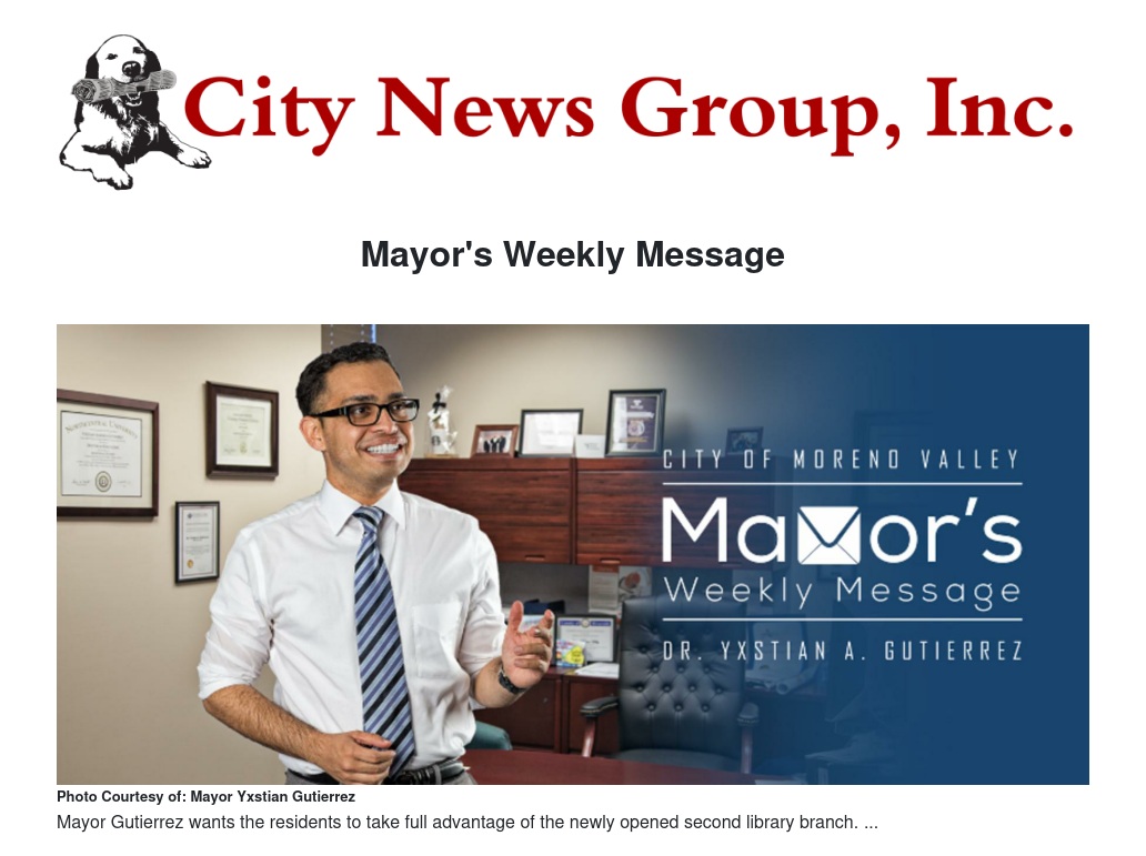 Dear Moreno Valley Residents: