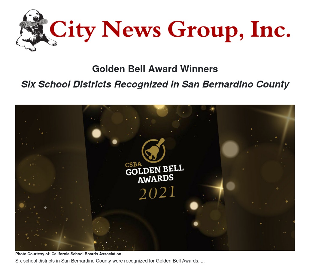 During a virtual ceremony held on Jan. 31, San Bernardino County Superintendent of Schools (SBCSS) and the San Bernardino California School Boards Association (SBCSBA) recognized six school districts in San Bernardino County for earning California School Boards Association (CSBA) Golden Bell Awards last month.