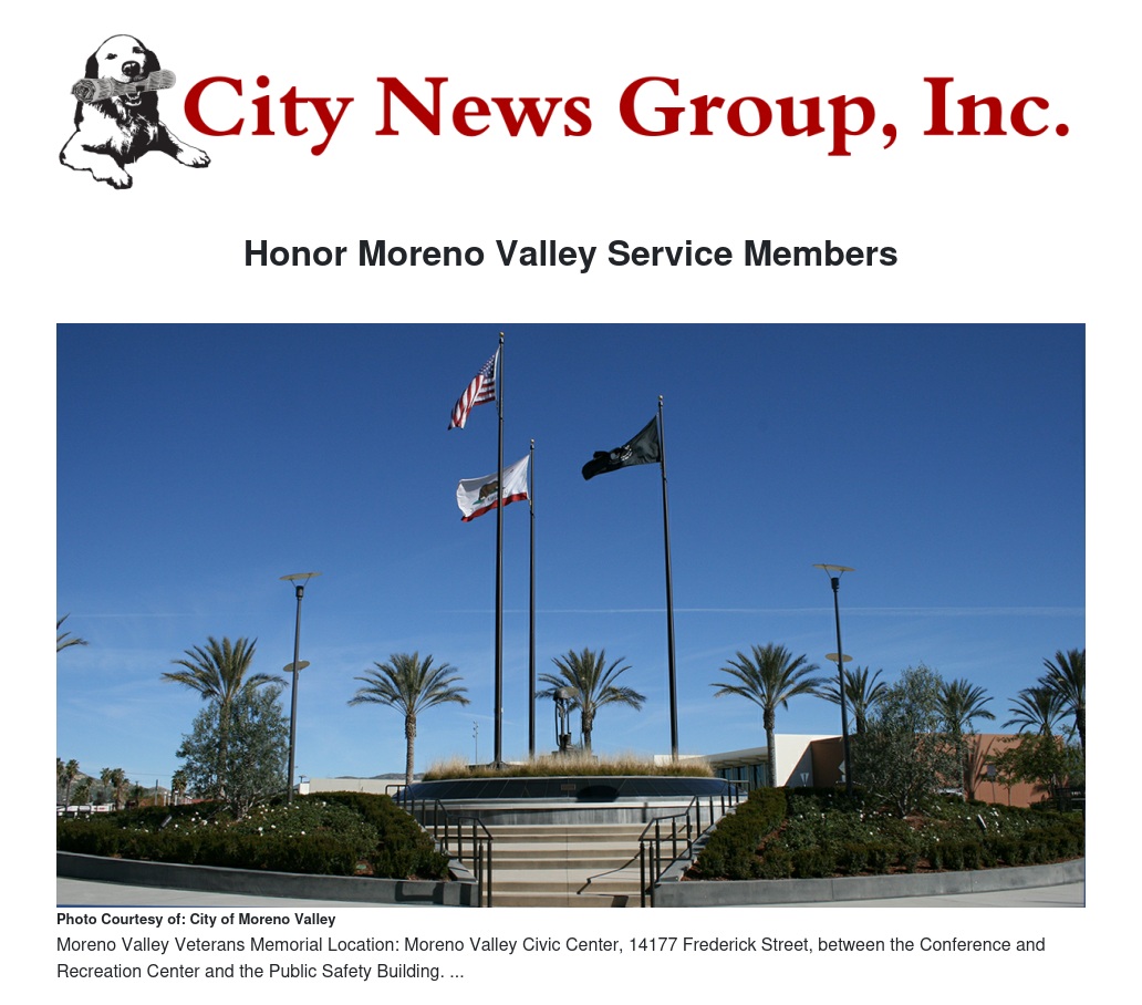 Honor Moreno Valley Service Members by Ruby Stephenson - City News Group, Inc.