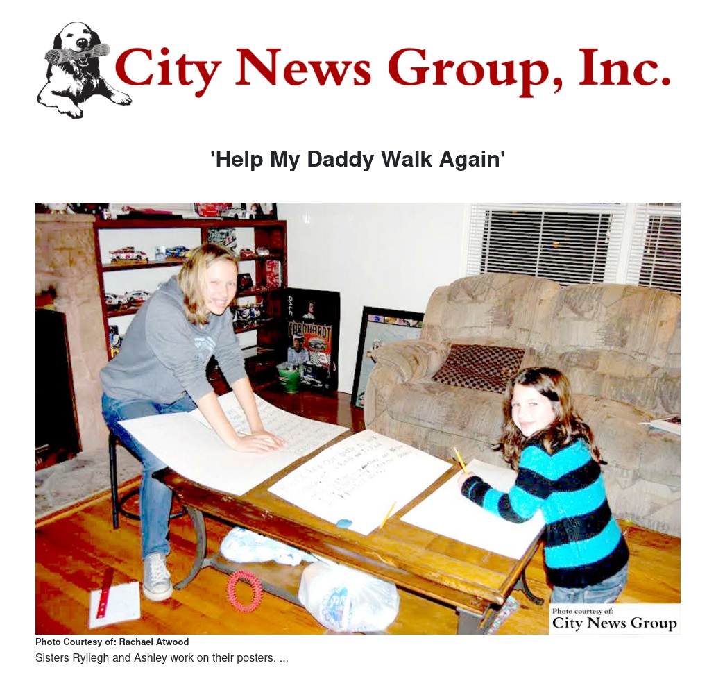 Those interested in further helping the Atwood girls and their "HELP MY DADDY WALK AGAIN" campaign, please contact Rachael Atwood at (909) 838-6761.