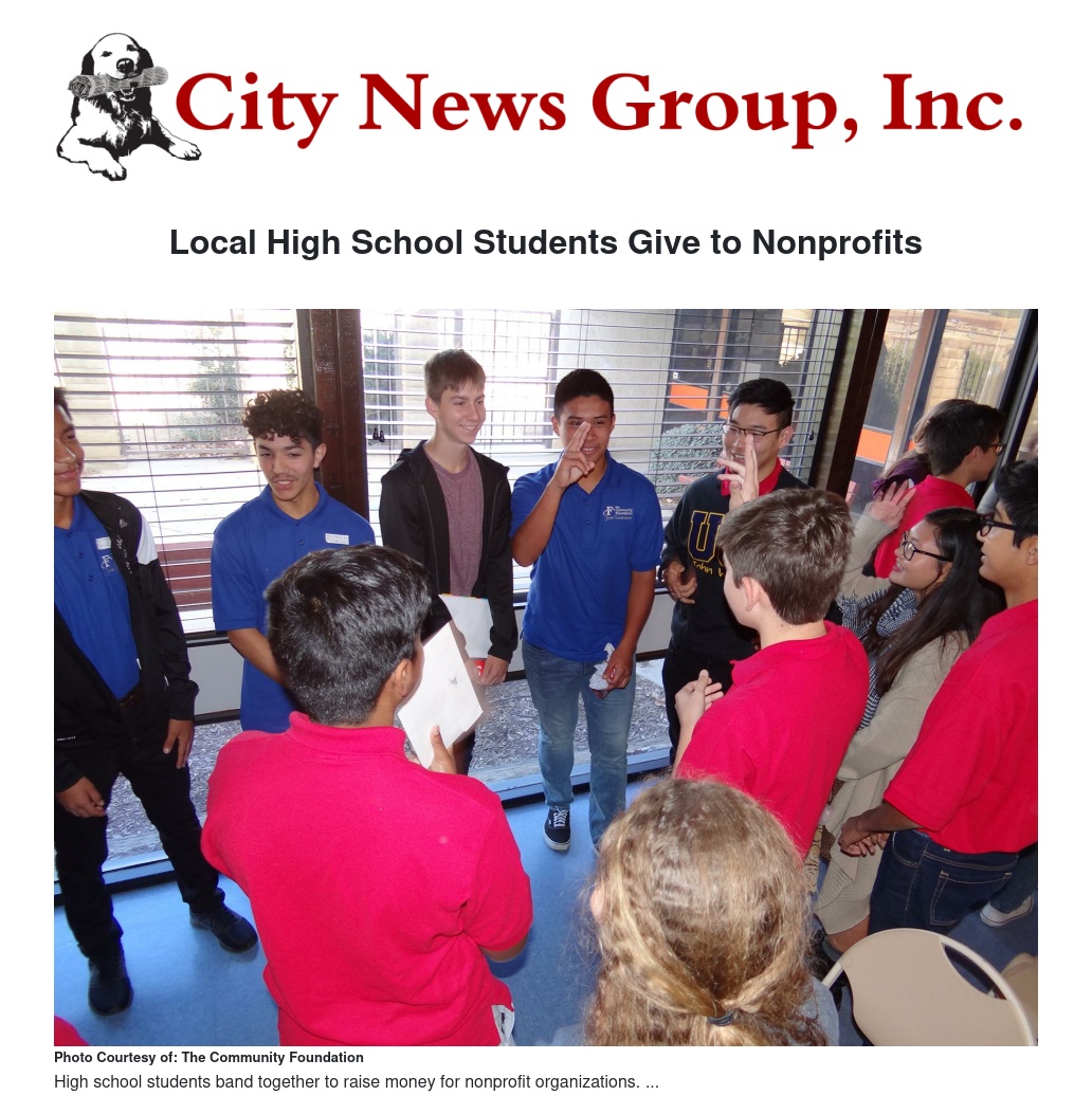 The Community Foundation which serves Inland Southern California (Riverside and San Bernardino Counties) has area high school students fund grants for local nonprofits.